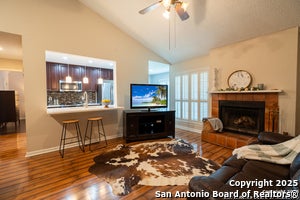 Welcome to this stunning unit in a secure, gated community - a true must-see! With limited residences, this immaculate home offers comfort, style, and convenience in every detail. The spacious open-concept design is complemented by soaring vaulted ceilings, flooding the space with natural light. Fully furnished and move-in ready, this unit is perfect for traveling professionals, those between homes, or anyone seeking a turnkey living experience. Interior Features: Large reclining sofa with additional seating Lift-top coffee table - ideal for dining or working Entertainment center with a 55" TV Stylish area rug, chic plant decor, and wall art In-unit washer and dryer, ironing board, and iron Plantation shutters with double-pane windows for energy efficiency Digital door lock for secure, keyless entry Bedroom: Plush king-size bed with linens, pillows, and comforter Dresser, nightstand with lamp, and shoe rack Spacious desk and chair with extra seating Full-length mirror for added convenience Kitchen & Dining: Fully equipped with refrigerator (with ice maker), stove/oven, dishwasher, microwave, and garbage disposal Essentials included: dishes, silverware, pots and pans, glassware, mixing bowls, toaster, Keurig, and smoothie maker Dining table with seating for three Outdoor Living: Private balcony with seating - perfect for coffee mornings or evening wine Extra storage shed Beautiful view overlooking the YMCA, just steps away Extras: Towels and fire extinguisher included Rent covers water, trash, and HOA fees Enjoy a complimentary two-month YMCA membership (up to $55 value) Location Perks: Convenient access to Hwy 281 & 1604 Minutes from top retailers, dining options, and a movie theater Don't miss this exceptional opportunity - schedule your private tour today and experience effortless, elevated living.
