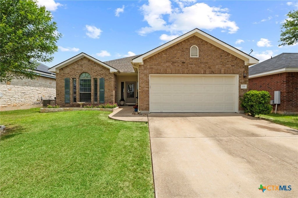 This is a really nice and well-maintained single-story home in Sonterra. Upon entering, you'll find an inviting living room with an open kitchen and dining area offering views of the backyard. The owner’s suite provides a comforting feel with back windows that overlook the yard. The en-suite bathroom features a double vanity, dual walk-in closets, a garden tub, and a walk-in shower. The secondary bedrooms are spacious and include large closets. The floorplan is open and quite functional, with extra storage added throughout the home. The perfect covered back porch provides cool summer shade and is accented by an extended stained concrete patio overlooking the backyard. Additionally, a full irrigation system makes it easy to maintain the nice landscaping that complements the home. Sonterra is a Master-Planned community located in the Jarrell ISD, offering residents a community clubhouse, two community pools, parks, walking trails, sport courts, and a playground. The community provides easy access to shopping, dining, and I-35.