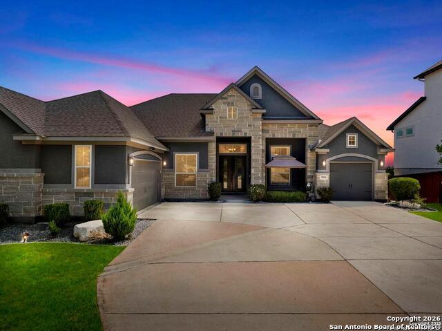 Experience luxury living in Cibolo Canyons with this stunning residence by Chesmar Homes. The open floor plan features high ceilings, expansive living areas, and premium finishes. The chef's kitchen boasts a gas cooktop, grand dual islands, stainless steel appliances that take center stage while seamlessly connecting to the spacious living room with vaulted ceilings and a statement fireplace. The private primary suite is a serene retreat with a spa-like bath, upgraded with dual vanities and a self standing garden tub. The spacious guest bedrooms are equipped with large closets, and upgraded carpet. The backyard oasis features a covered patio with surround sound through-out and a stunning outdoor fireplace offering the perfect space to escape to tranquility and savor the lush greenbelt and alluring views. Equipped with electric vehicle charger Experience resort style pools, clubhouses, and exclusive perks at renowned world-class Tournament Players Club golf courses. This home offers ultimate privacy & prestige in luxury living.