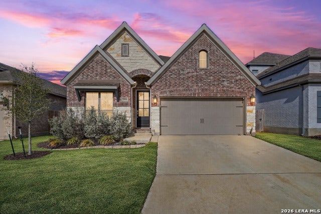Welcome to this beautifully designed home offering both functionality and comfort. A private home office with French doors and an impressive 11-foot ceiling greets you at the entry-perfect for working from home or creating a quiet retreat. The open-concept kitchen features a large center island, corner walk-in pantry, and flows seamlessly into the dining area and spacious family room highlighted by a wall of windows that fills the space with natural light. The generous primary suite provides a relaxing escape, complete with dual vanities, a garden tub, separate glass-enclosed shower, and an oversized walk-in closet. Secondary bedrooms also include walk-in closets, offering ample storage throughout. Additional features include a convenient mud room located just off the two-car garage for added organization and everyday ease. This home combines thoughtful design with modern living-schedule your showing today!